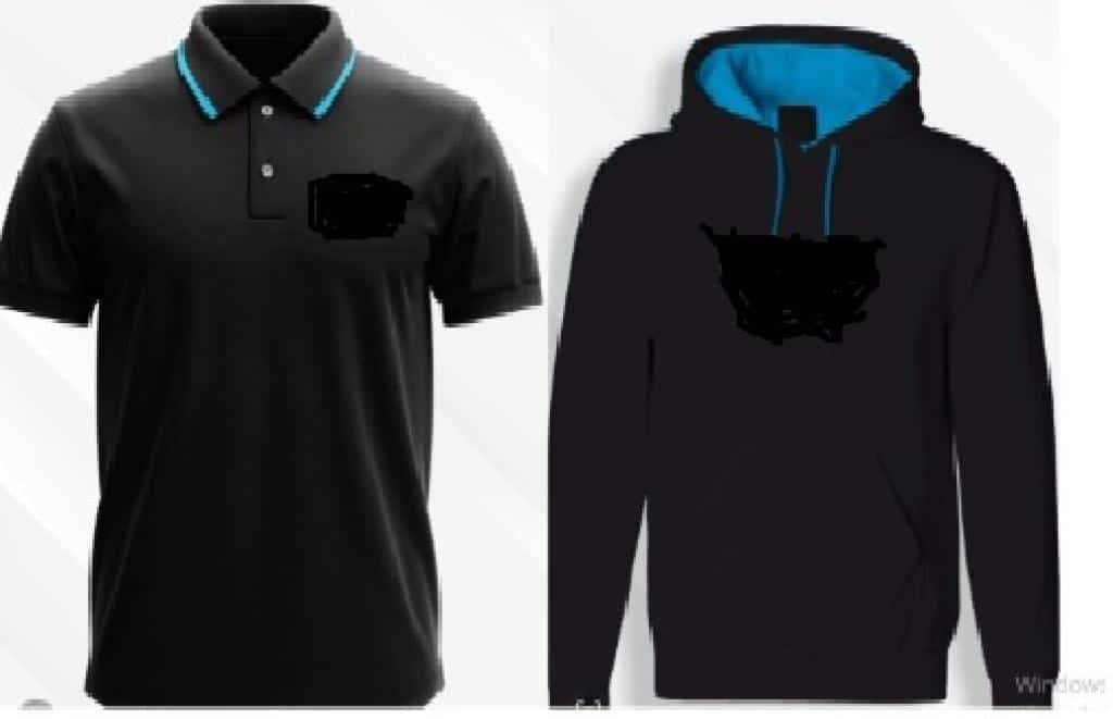 T-shirt: antrasit siyah zemin rengi kullanılacaktır; %100 pamuk penye lacoste antrasit siyah 30/1 pike kumaş, örme yaka ribana olup ucunda turkuaz geçiş olacak, yaka düğmeleri siyah olacaktır. Aşağıda belirtilen örnek görsele uygun olacak.